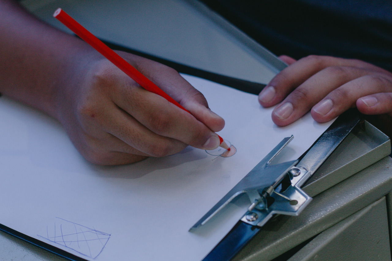 Com convite da assistente social e da psicóloga da unidade, realizamos nos dias 15 e 29 de abril de 2025, das 14h às 16h, uma oficina de fotografia para onze pessoas dentro da Medida Socioeducativa de São José. A Medida Socioeducativa e os Centros Socioeducativos são respostas do Estado à jovens que cometem atos infracionais e a sua aplicação tem como objetivo a reinserção social do jovem na sociedade, contendo as modalidades de reclusão integral, parcial e assistida, assistiva e serviços comunitários. E, nesta situação era de medida assistiva, somente cumprindo horas. Todos os onze jovens atendidos foram homens, de 14 à 19 anos, sendo cinco que se declaram negros, quatro brancos e dois jovens não informaram, segundo dados da Medida Socioeducativa.