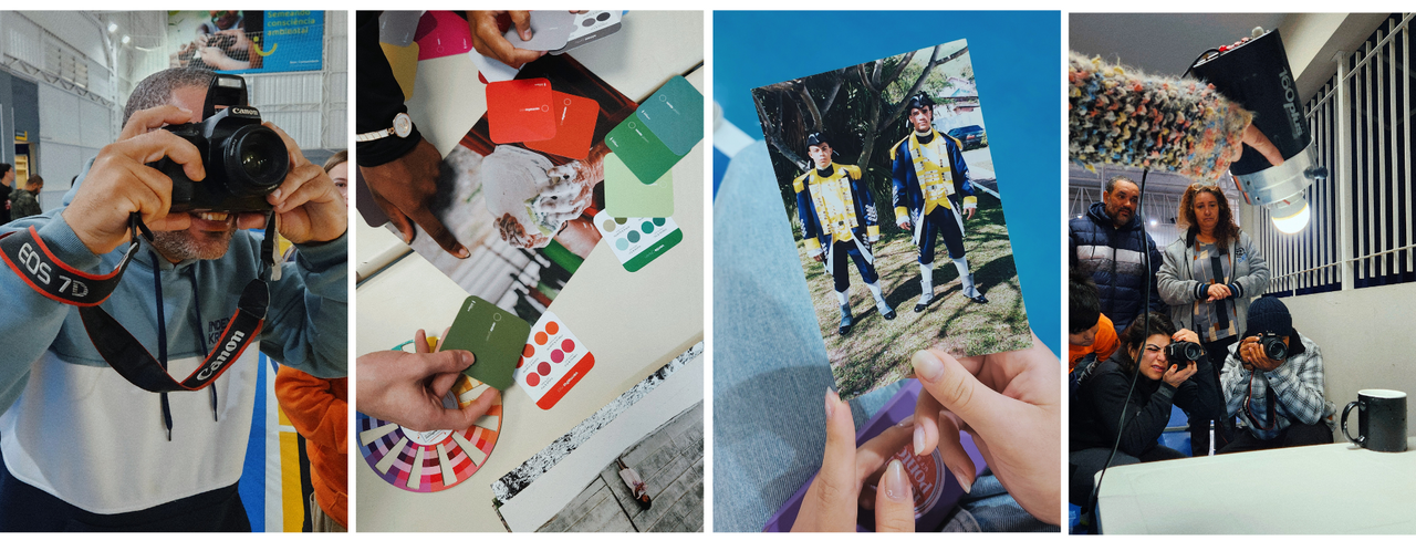 Iniciamos uma jornada pelo mundo do cinema através de atividades dinâmicas entre teoria e prática, onde os educandos foram incentivados a expressar sua visão, memórias e emoções. Sendo assim, as duas turmas receberam a mesma abordagem de conteúdo, mas com profundidades diferentes a partir do desenvolvimento de cada participante. Durante o curso, os temas abordados foram cuidadosamente selecionados para proporcionar uma formação abrangente, partindo do básico e dos territórios. Iniciamos com a fotografia, explorando seus fundamentos e as técnicas essenciais para a captura de imagens, preparando os educandos para entender a base visual do cinema e introduzindo a narrativa. Em seguida, aprofundamos na história e narrativa do cinema, desvendando a evolução da sétima arte e os elementos básicos para contar histórias coesas. A etapa seguinte foi dedicada ao roteiro ilustrado, onde aprenderam a estruturar e apresentar suas narrativas. Por fim, chegamos no desenvolvimento audiovisual, onde os educandos conceberam, produziram e executaram integralmente um material próprio, que teve como ponto alto uma exibição popular.