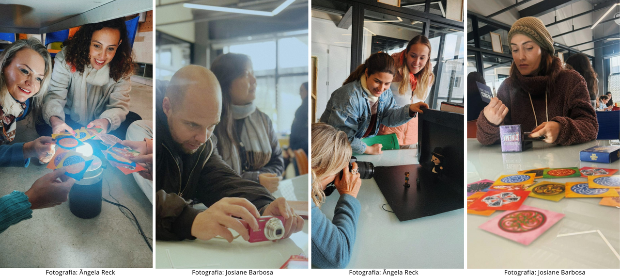 As cinco simulações distintas, cada uma pensada para desenvolver habilidades específicas, foram organizadas para que os participantes compreendessem e aplicassem os conceitos fundamentais apresentados na parte teórica sobre a fotografia por meio da prática orientada, estimulando a capacidade de adaptação a diferentes condições de registro. Os grupos rotacionaram entre os cenários, dedicando até dez minutos a cada simulação, permitindo que os educadores experimentassem essa variedade de possibilidades.